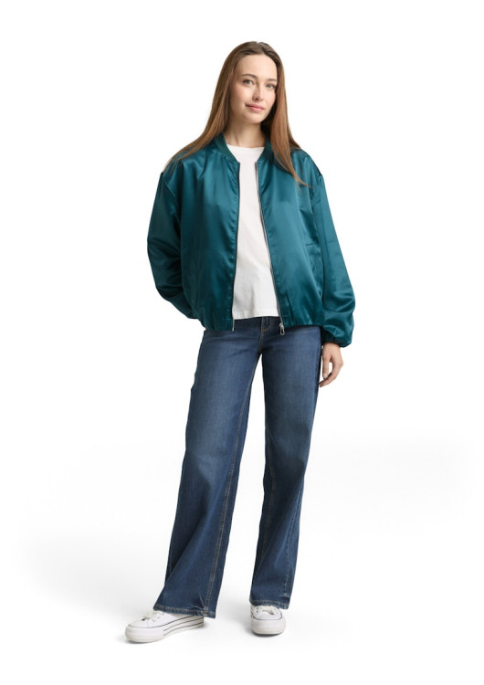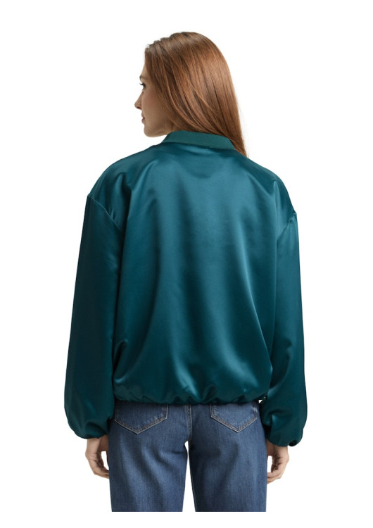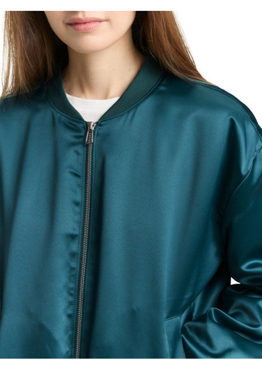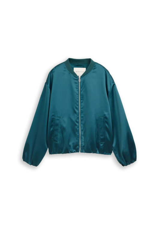 Tom Tailor dámská bomberová bunda s bočními kapsami a elastickým pasem. Vyrobena z lesklé, splývavé saténové látky.