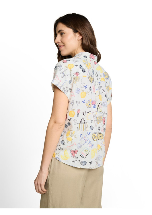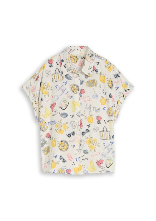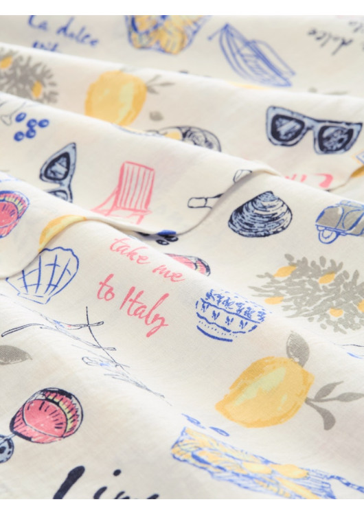 Hlavním designovým detailem je vtipný a detailní potisk, který oslavuje „la dolce vita“. Je to kousek stvořený pro ženu, která miluje léto a hledá kvalitu přírodních materiálů – len zajišťuje prodyšnost, zatímco viskóza dodává látce potřebnou jemnost a snižuje její mačkavost. Košile, která v sobě nese esenci slunného odpoledne, ať už ji vezmete na pláž nebo na kávu do centra města.