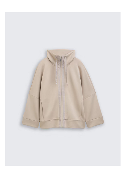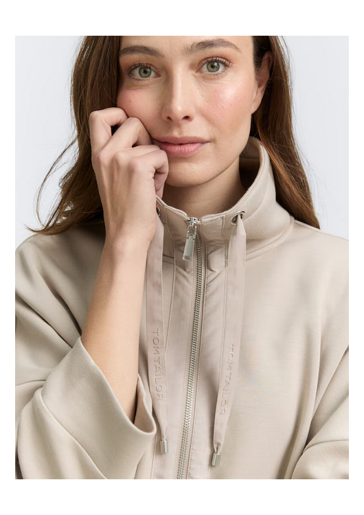 Tom Tailor dámská mikina s bočními kapsami a stahovací šňůrkou u límečku. Se sníženými ramenními švy a krátkými bočními rozparky. Vyrobeno z nemačkavé a elastické látky.