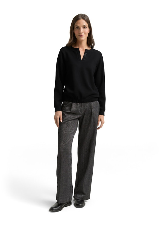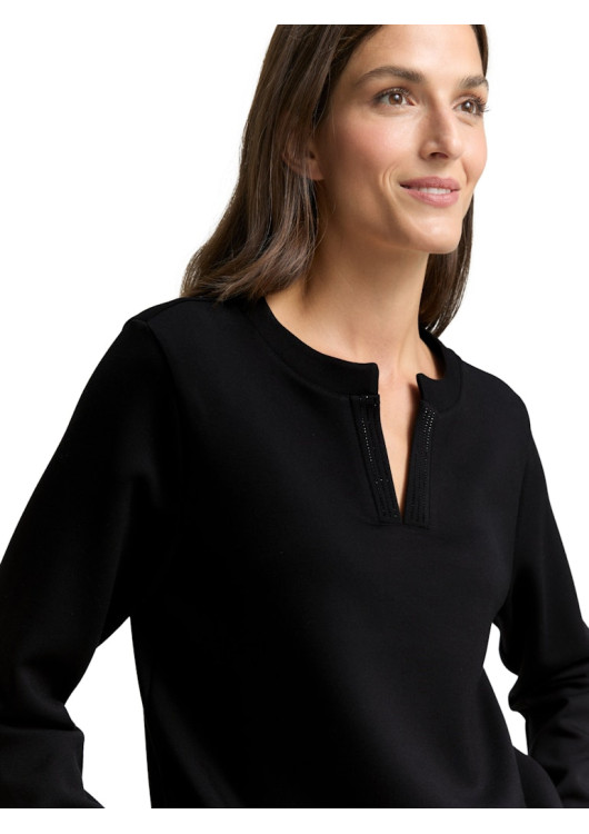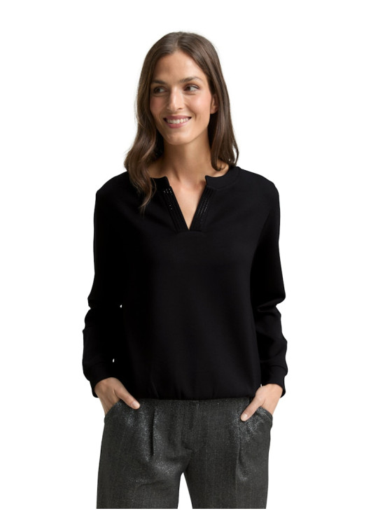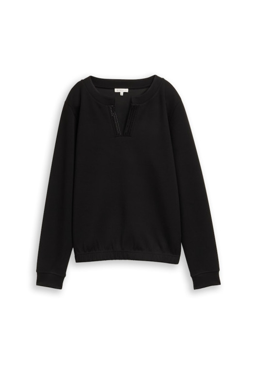 Tom Tailor dámská mikina s kamínky u výstřihu a elastickým pasem. Vyrobena z měkké, nemačkavé a pružné potápěčské látky.