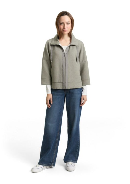 Mikina s bočními kapsami a stahovací šňůrkou u límečku. Se sníženými ramenními švy a krátkými bočními rozparky. Vyrobena z nemačkavé, elastické a neoprenové potápěčské látky.