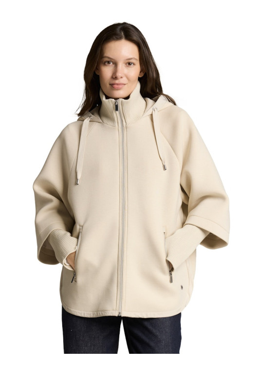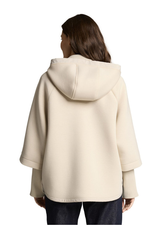 Připravte se na to, že tento kousek nebudete chtít na jaře a na podzim sundat. Tato světle béžová bunda od značky Tom Tailor přináší naprosto unikátní siluetu, která si bere to nejlepší z pohodlné mikiny a elegantního ponča. Široký, zvonový střih vás dokonale zahalí, zatímco dlouhé, přiléhavé žebrované manžety na rukávech udrží teplo u těla a dodají celku nečekaný architekturální prvek.