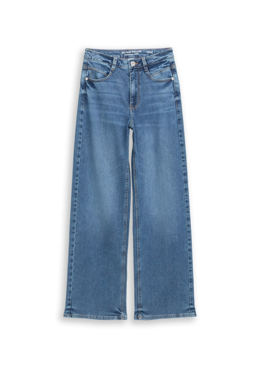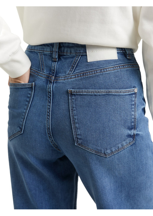 Džíny s vysokým pasem a pěti kapsami, s bočními kapsami vpředu a nakládanými kapsami vzadu. Strečový materiál zajišťuje větší volnost pohybu a pohodlné nošení.
