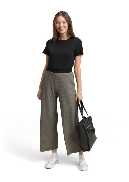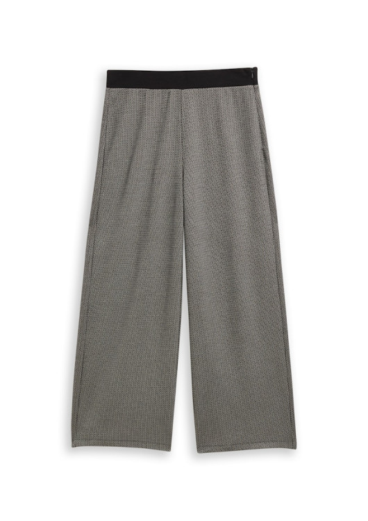 Kalhoty Culotte se skrytým zipem na boku. Vyrobeny z texturované žakárové látky s pružným materiálem pro pohodlné nošení.