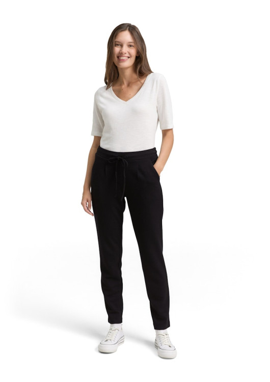 Tom Tailor dámské kalhoty s elastickým pasem a stahovací šňůrkou. S bočními kapsami vpředu a falešnou zadní kapsou. Vyrobeno z texturované žakárové látky s pružným materiálem pro pohodlné nošení.