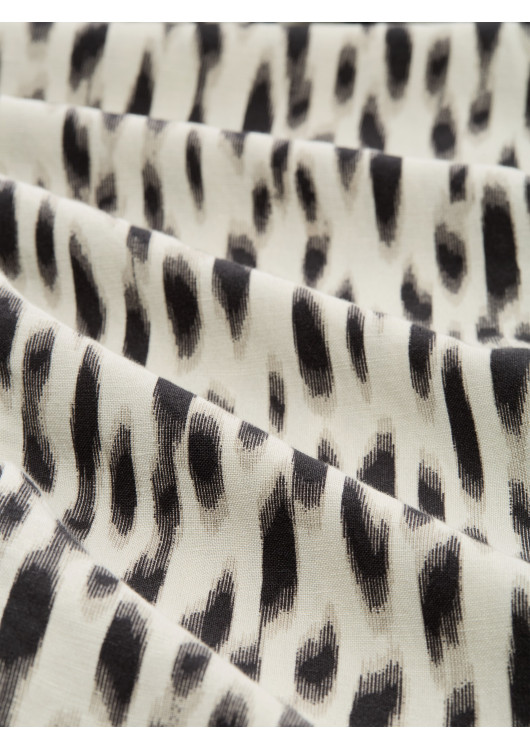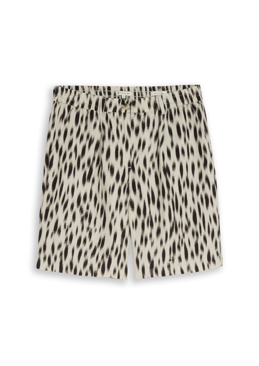 Hledáte šortky, které vybočují z řady obyčejných kousků? Tento model od značky Tom Tailor představuje dokonalý balanc mezi moderní divočinou a naprostým pohodlím. Výrazný černý vzor na světlém podkladu dodává bermudám luxusní nádech, zatímco volnější střih nohavic zaručuje, že vám bude příjemně i v největším horku.