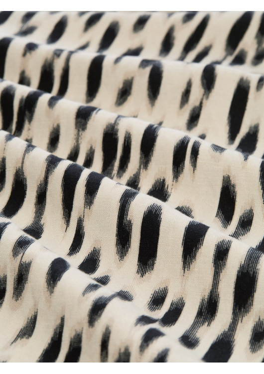 Hlavním designovým detailem je výrazný, ale přesto vkusný vzor, který šatům dodává charakter a umělecký nádech. Jsou stvořeny pro ženu, která oceňuje prémiové přírodní materiály – len zajišťuje prodyšnost a odolnost, zatímco viskóza dodává látce potřebnou jemnost. Šaty, které v sobě nesou esenci slunného léta a nespoutané elegance, ať už vyrazíte na pláž nebo na pracovní oběd.