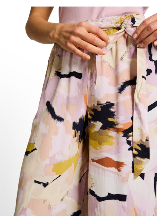 Hlavním designovým detailem je pružný pas s vázacím páskem, který zajišťuje maximální komfort a umožňuje perfektní přizpůsobení vaší postavě. Jsou stvořeny pro ženu, která miluje moderní přírodní materiály – kombinace viskózy a lyocellu (Tencel™) příjemně chladí na pokožce a dodává látce luxusní splývavost. Kalhoty, které v sobě nesou esenci uvolněného letního luxusu.