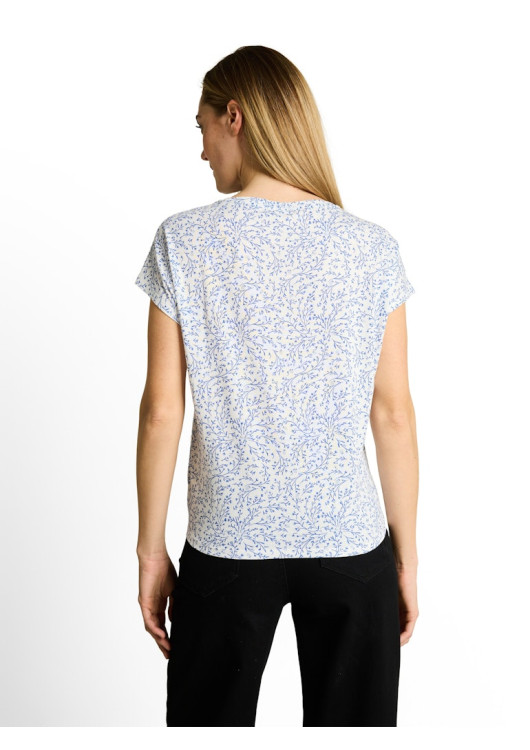 Hledáte vršek, který je stejně pohodlný jako vaše oblíbené tričko, ale vypadá o úroveň stylověji? Tento model od značky Tom Tailor přináší do vašeho šatníku romantický vzor drobných větviček v moderním pojetí. Širší lodičkový výstřih a přinechané krátké rukávy vytvářejí siluetu, která působí nenuceně a velmi žensky.