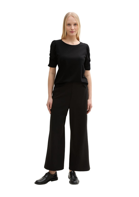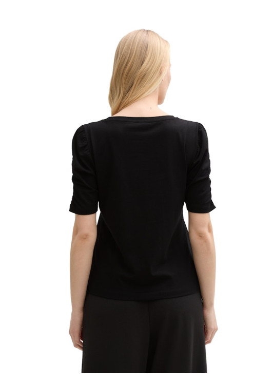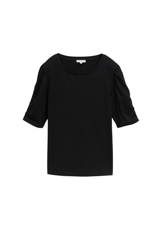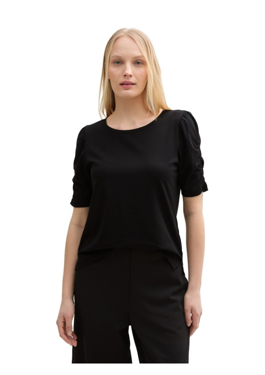 Tom Tailor dámské tričko s nařasenými rukávy a krátkými bočními rozparky. Vyrobeno z jednobarevného žerzejového materiálu. V rovném střihu.