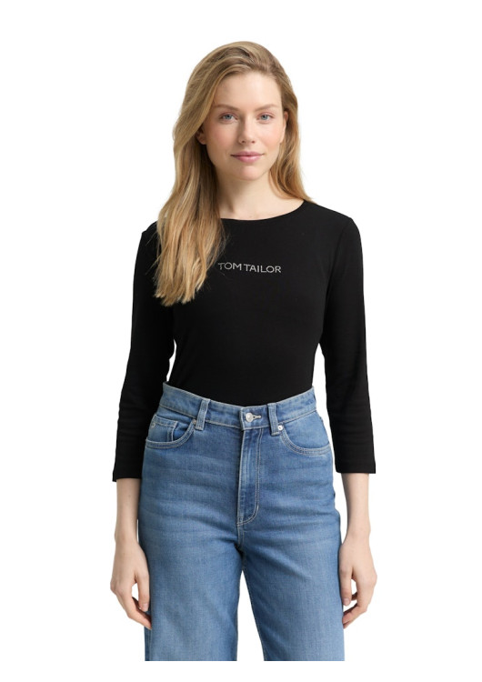 Přiléhavé triko s tříčtvrteční délkou rukávu a třpytivým logem s kamínky na hrudi. Vyrobeno z bavlněné látky s mírnou strečovou úpravou pro pohodlné nošení.