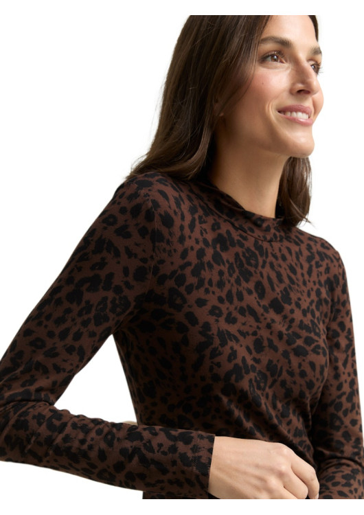 Tom Tailor dámské vzorované tričko s dlouhým rukávem a krátkým stojáčkem. Vyrobeno z lehkého splývavého úpletu s mírnou strečovou úpravou.