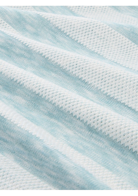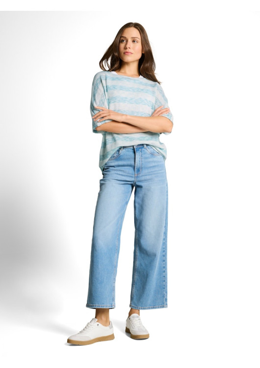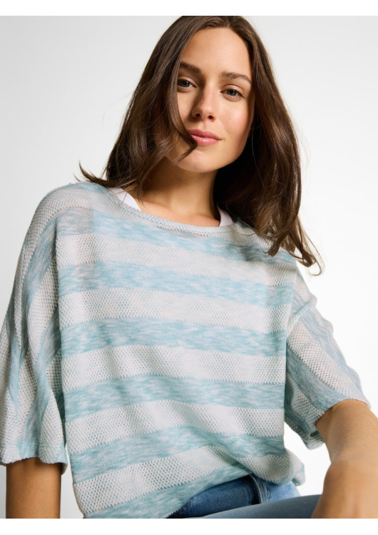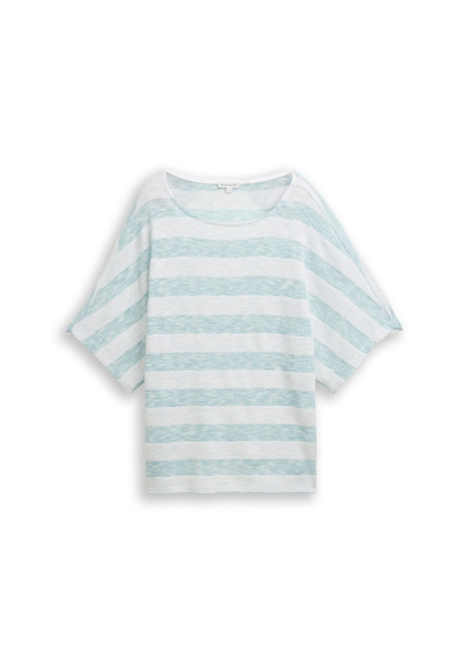 Vneste do svého šatníku svěží závan letní energie! Tento nádherný pruhovaný top od značky Tom Tailor v sobě kombinuje nestárnoucí námořnický styl s maximálním pohodlím. Světle modré a čistě bílé pruhy působí nesmírně optimisticky, ale to, co si zamilujete nejvíce, je inovativní materiál. Jemně dírkovaná textura úpletu zaručuje, že jím bude příjemně profukovat letní vánek.