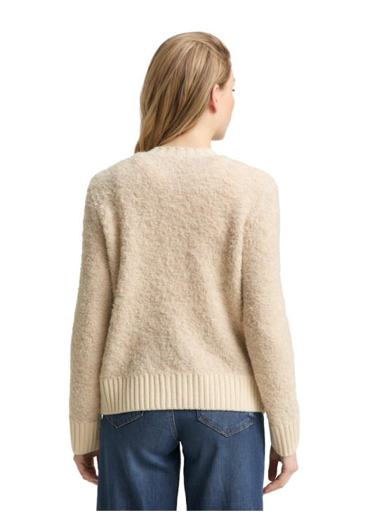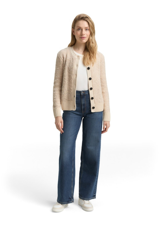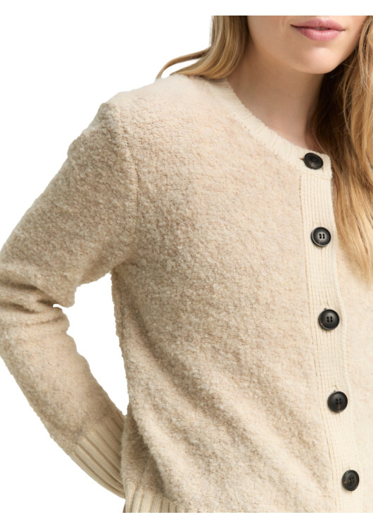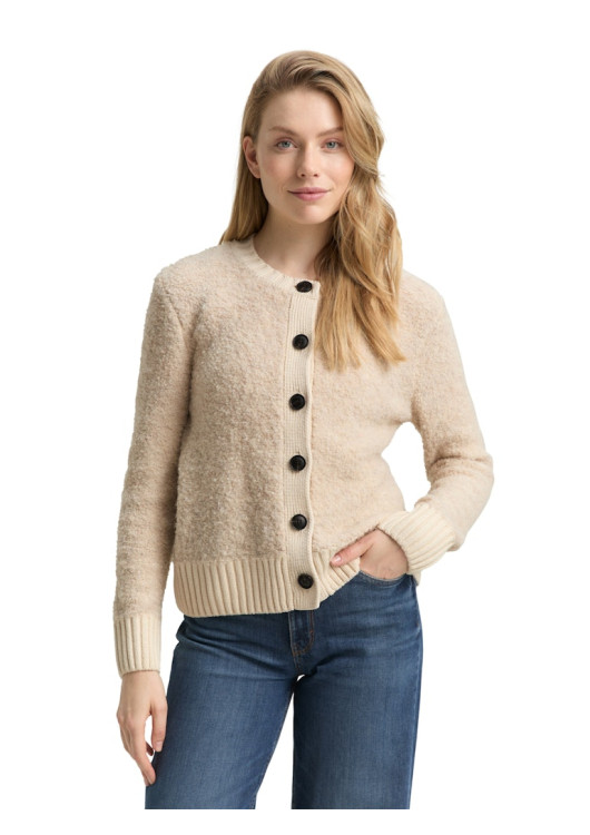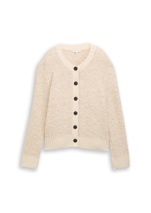 Tom Tailor dámský cardigan z buklé s kulatým výstřihem a zapínáním na knoflíky. Vyroben z měkké pleteniny s podílem vlny pro obzvláště hřejivý a pohodlný pocit.