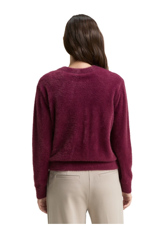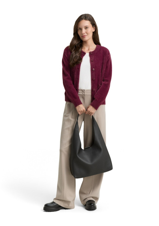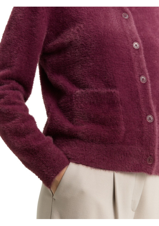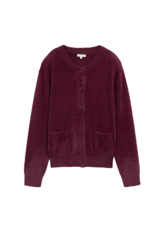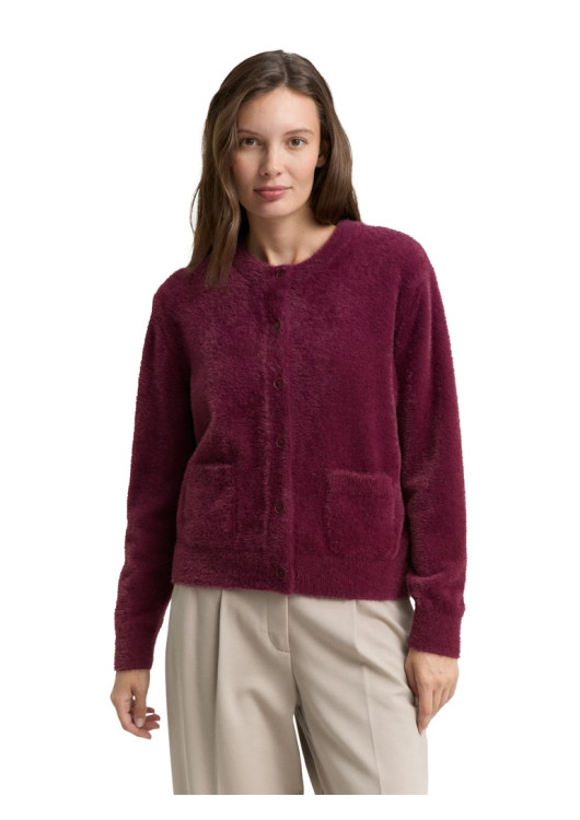 Tom Tailor dámský kardigan vyrobený z měkké, chlupaté a nadýchané péřové příze. S kulatým výstřihem, zapínáním na knoflíky a nakládanými kapsami vpředu.