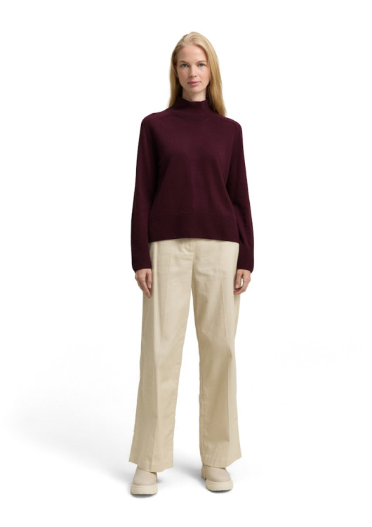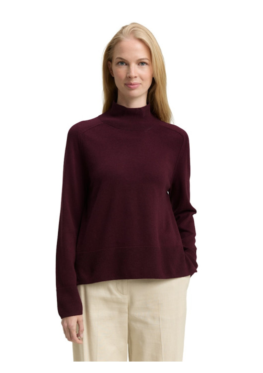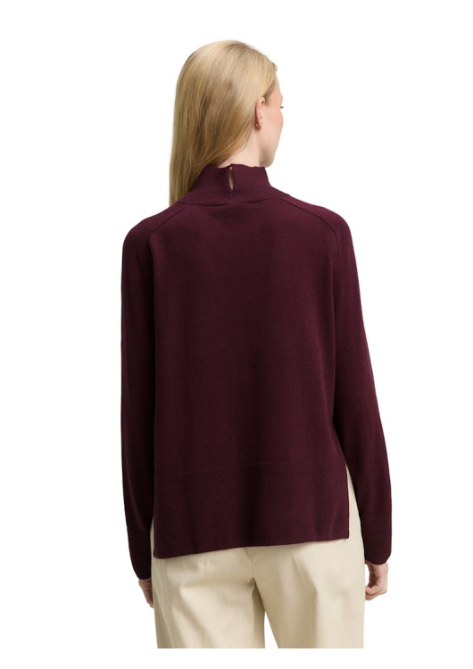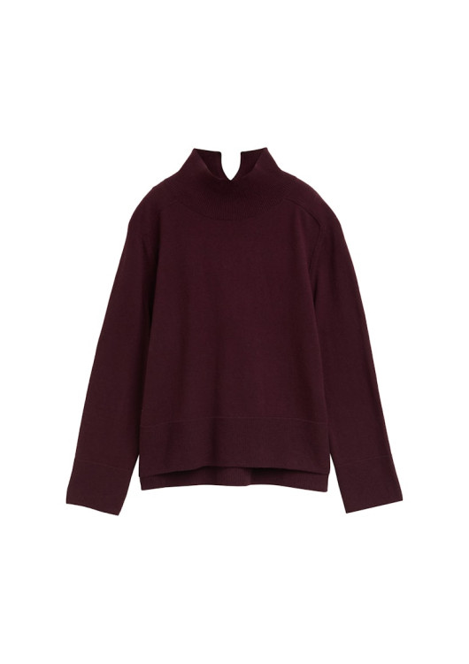 Svetr s melanžovým vzhledem, rozparkem vzadu na stojáčci a žebrovanými manžetami na lemu. Vyroben z měkkého pleteného materiálu s podílem vlny pro obzvláště hřejivý a útulný pocit. Rovný střih se stojáčkem.