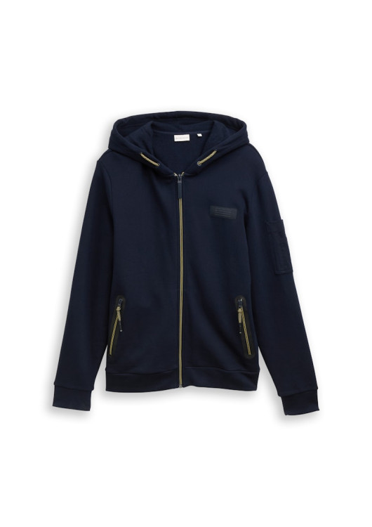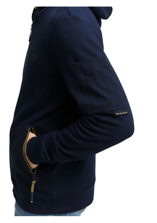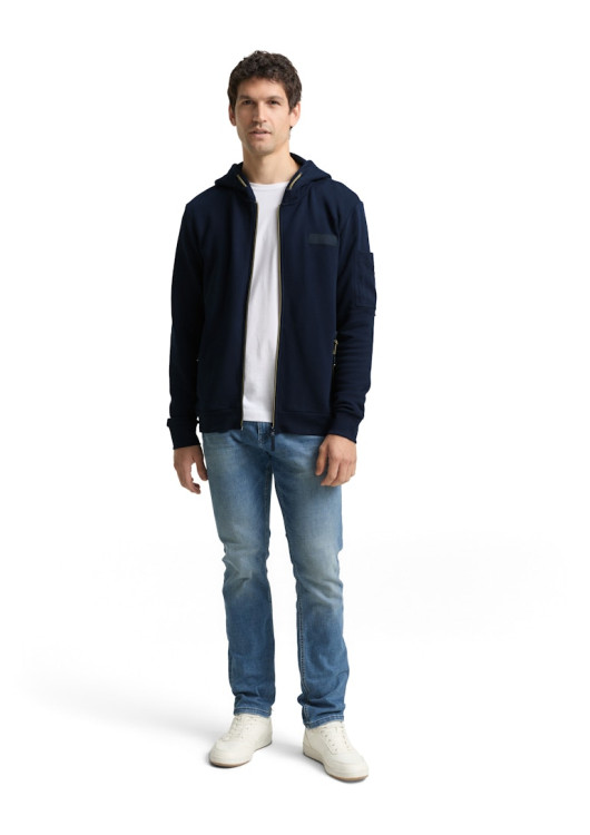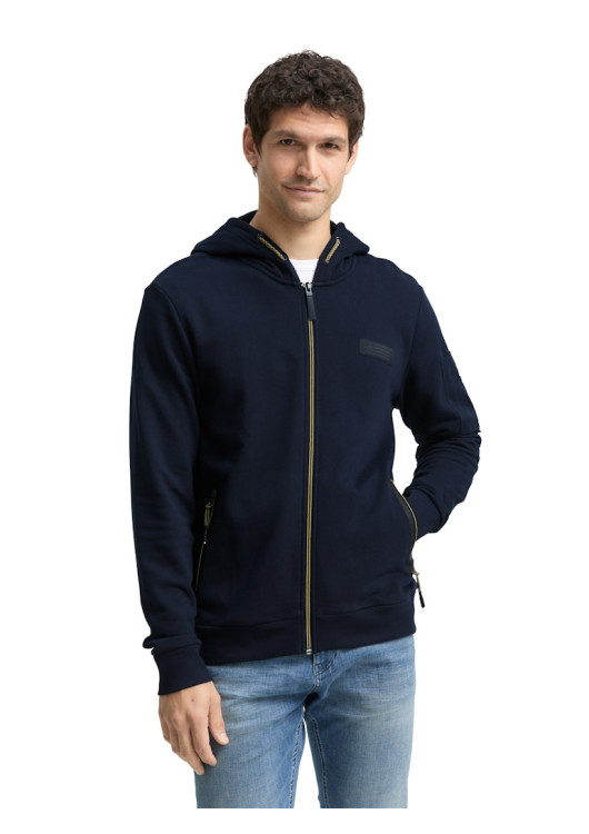 Tom Tailor pánská mikina s kapucí a logem na hrudi. S kapsami na zip vpředu a naší kapsou na rukávu.