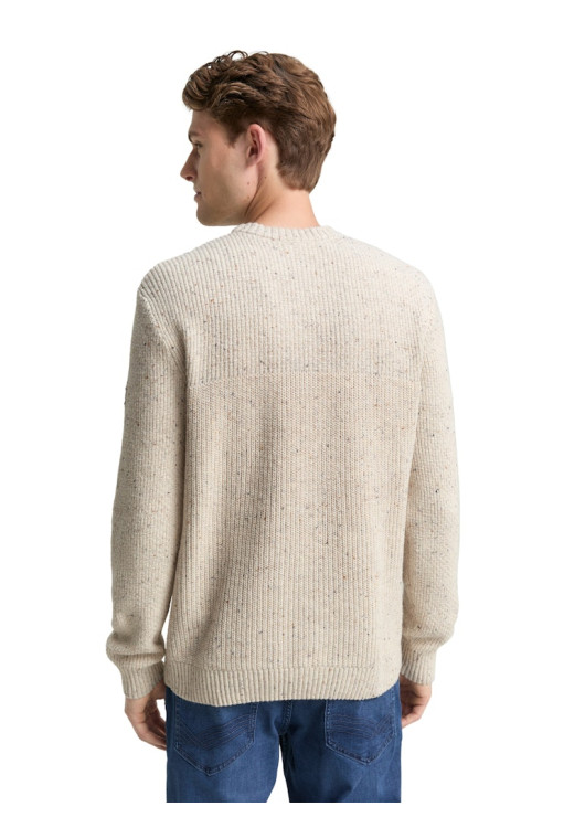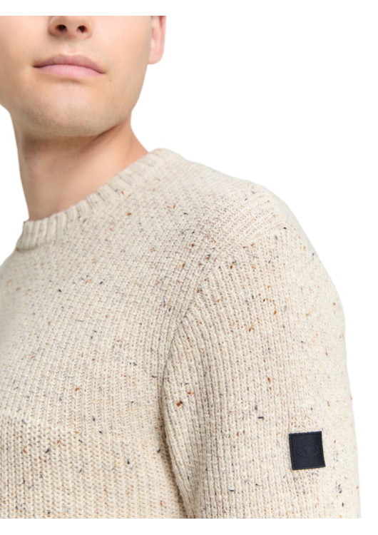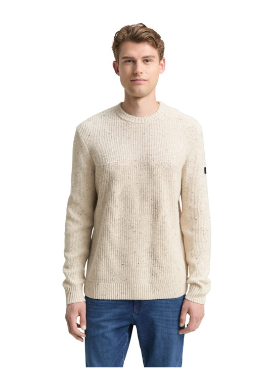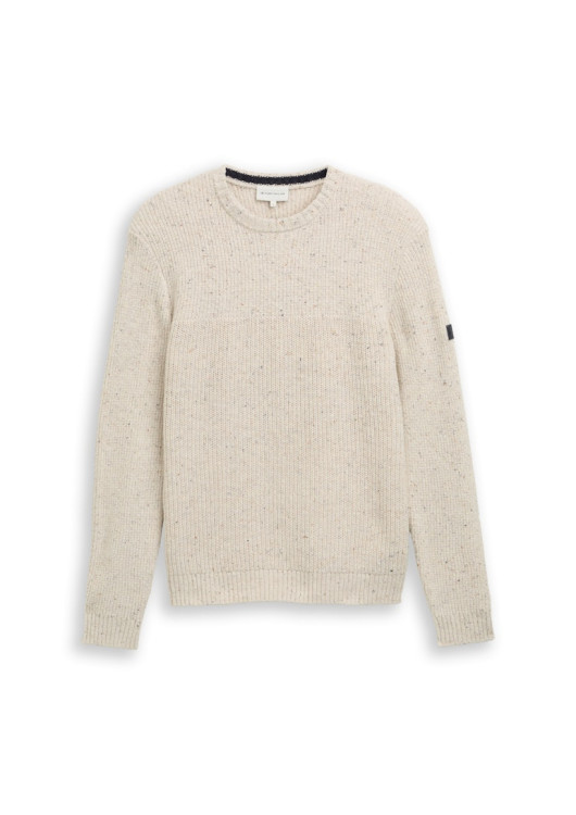 * Strukturovaný melanžový svetr s logem na horním rukávu a žebrovanými manžetami na lemu