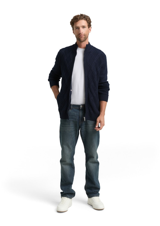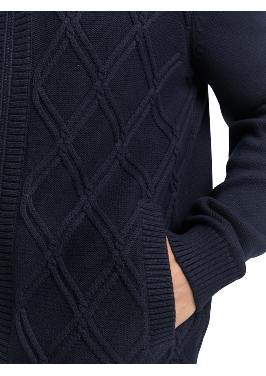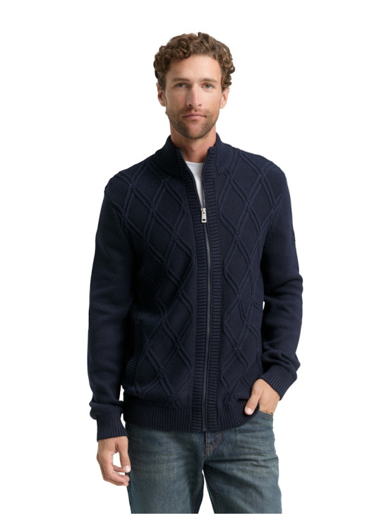 Bavlněný kardigan se stojáčkem a zapínáním na zip. S pleteným vzorem vpředu, bočními kapsami a nášivkou s logem na horním rukávu.